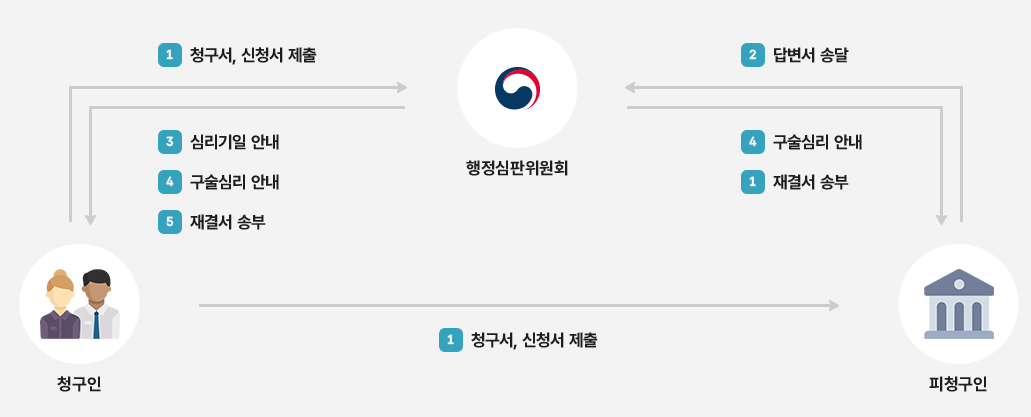 청구인이 위원회나 피청구인에게 청구서를 제출합니다.