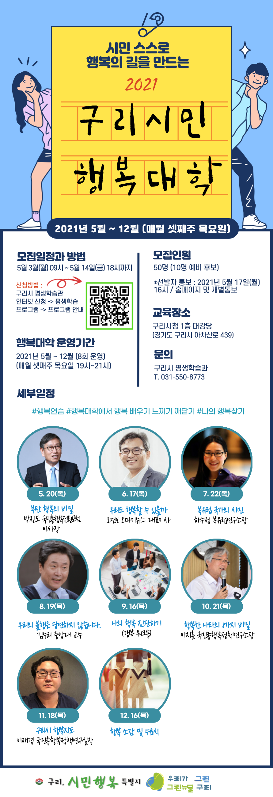 평생학습소식 이모저모 홈 평생학습마당 평생학습소식 이모저모 공유하기 네이버 페이스북 링크 프린트하기 평생학습소식 이모저모 상세보기 - 제목, 담당자, 작성일, 조회수, 파일, 내용 정보 제공 2021년 「구리시민 행복대학」 운영 안내 작성자 : 관리자 작성일 : 2021.04.30 17:32:27 조회 : 1,313 파일 png 문서 구리시민 행복대학_모집홍보(최종).png 사진 확대보기 목록 게시물삭제 본인삭제 게시물삭제 이전글 구리시 청소년 성교육강사 양성 심화과정 교육생 추가모집 안내 다음글 2021 민주시민교육 [기후환경 프로그램 지도자 과정] 참여자 모집 안내