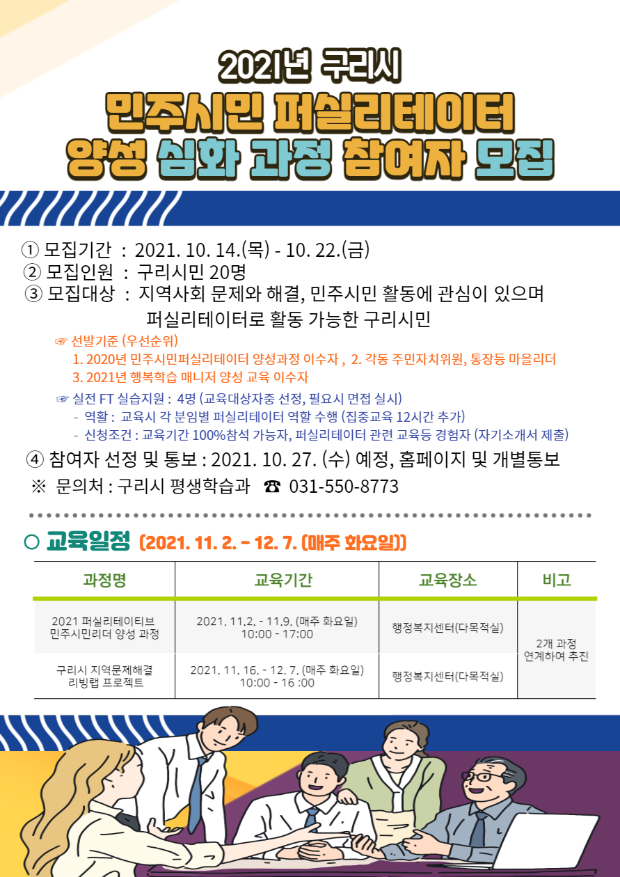 | 2021 구리시 민주시민 퍼실리테이터 양성 심화 과정 참여자 모집 | |