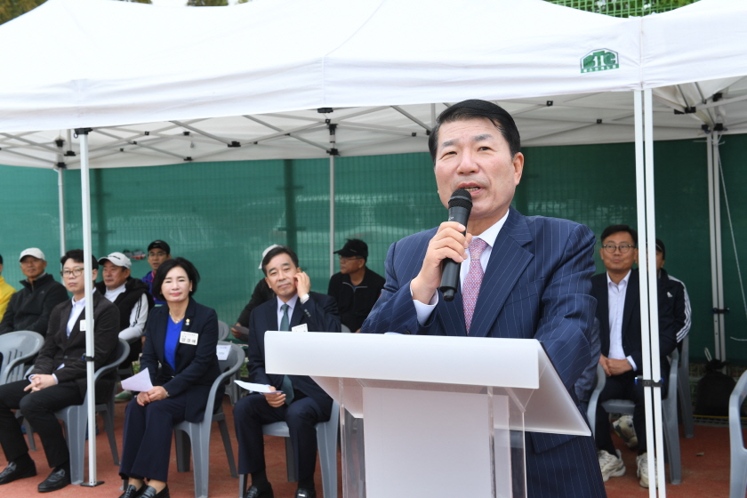 제1회 의장기 생활체육 테니스대회 백경현 구리시장은 10월 25일 왕숙체육공원에서 열린 '제1회 의장기 생활체육 테니스대회'에 참석하여 유공자에 대한 표창장을 수여하고 축사를 했다. (왕숙체육공원 2025. 10. 25.) |