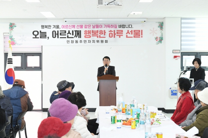 인창동주민자치위원회 '오늘, 어르신께 행복한 하루 선물' 행사 개최 백경현 구리시장은 12월 3일 인창동 행정복지센터에서 열린 ‘오늘, 어르신께 행복한 하루 선물’ 행사에 참석하여 인사말을 하고 행사 관계자들을 격려했다. (인창동 행정복지센터 2025. 12. 3.) |