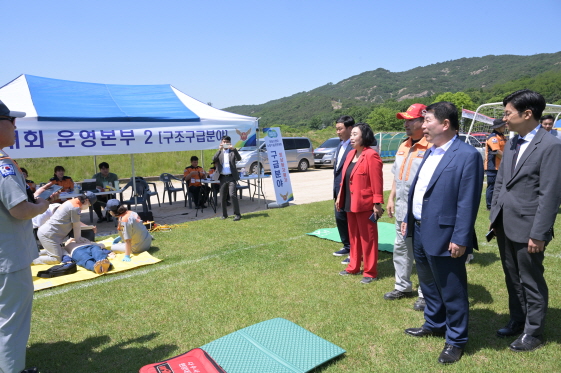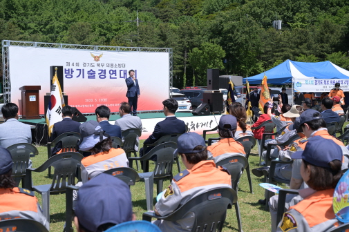 백경현 구리시장, 제4회 경기북부의용소방대 소방기술 경연대회 격려 백경현 구리시장은 23일 구리시민운동장에서 열린 제4회 경기북부의용소방대 소방기술 경연대회에 참석하여 축사를 하고 각 시·군 출전자들을 격려했다. (구리시민운동장 2023. 5. 23.) |