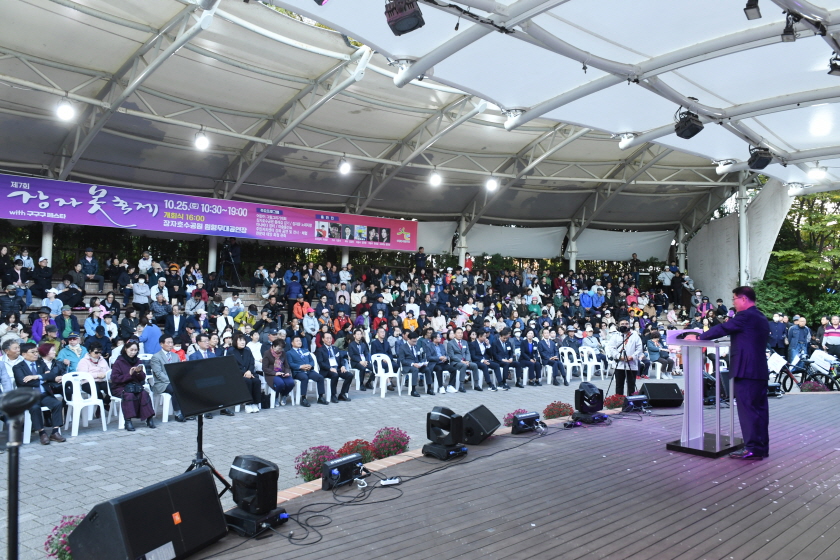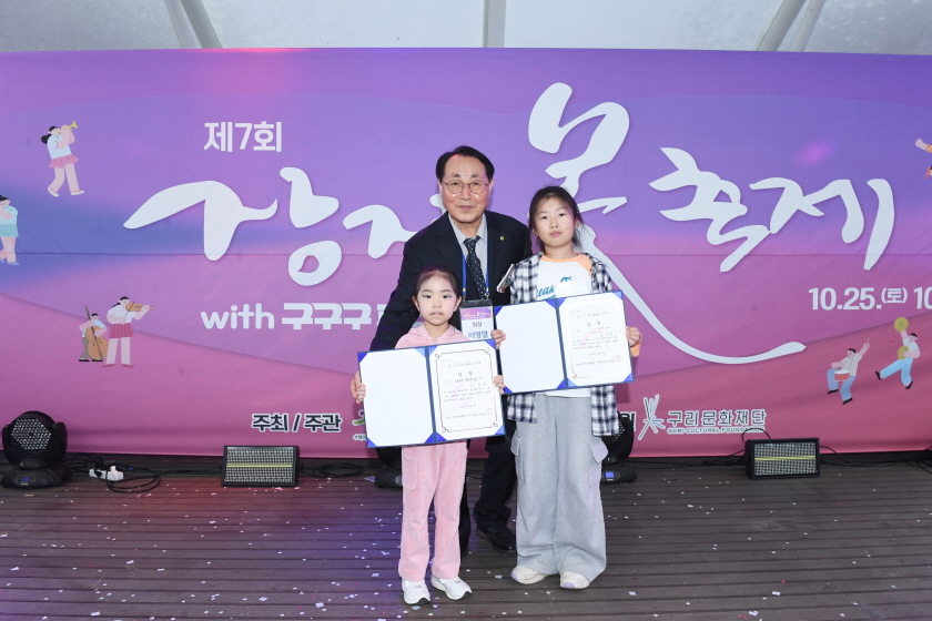 제7회 장자못축제(with 구구구페스타) 성황리에 개최 구리시는 10월 25일 ‘제7회 장자못축제’를 개최했다. 이번 축제는 수택3동 주민자치회가 주관하고 구리문화재단의 ‘구구구 페스타’와 함께 진행됐다. 장자호수공원 야외공연장에서 열린 축제는 어린이 그림그리기 대회를 시작으로 ▲주민자치센터 프로그램 체험 ▲천문대 관측 체험 ▲에어바운스 놀이 ▲페이스페인팅 등 다양한 체험 부스가 운영되어 방문객들에게 풍성한 즐거움을 선사했다. (장자호수공원 야외공연장 2025. 10. 25.) |