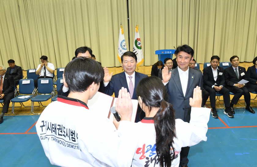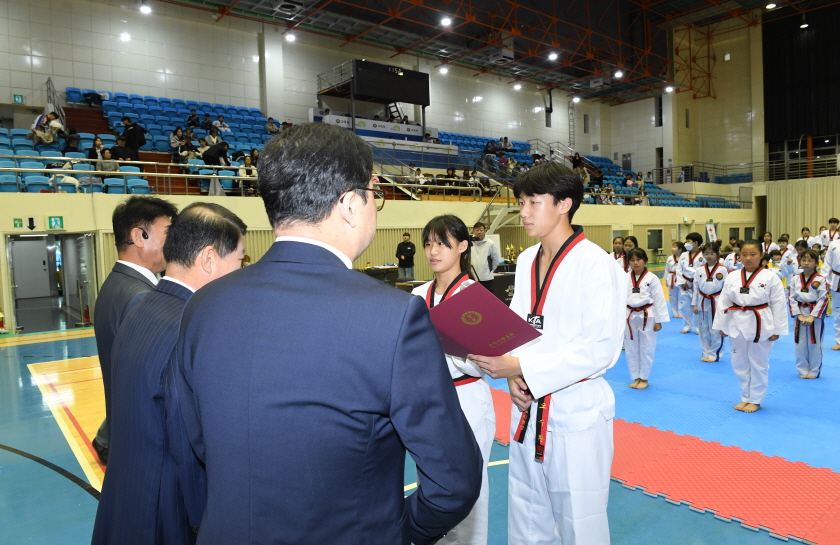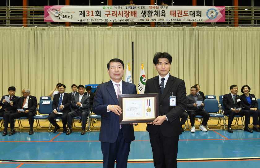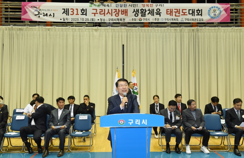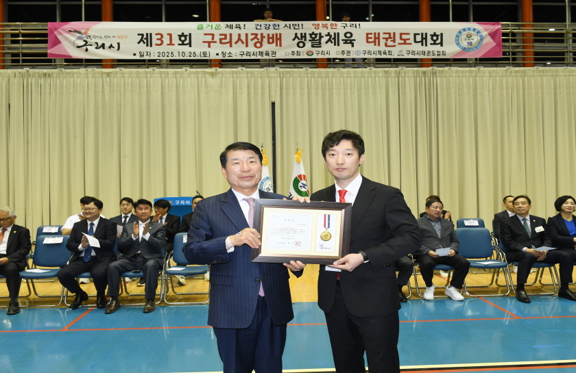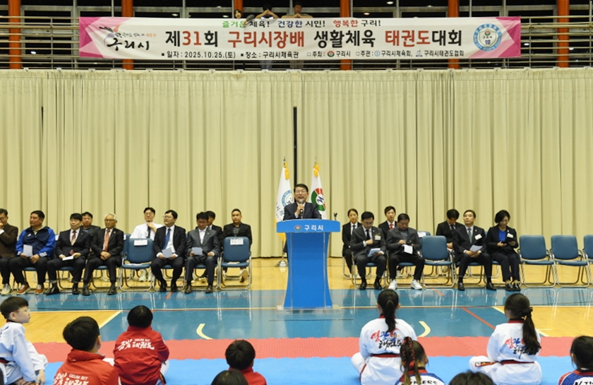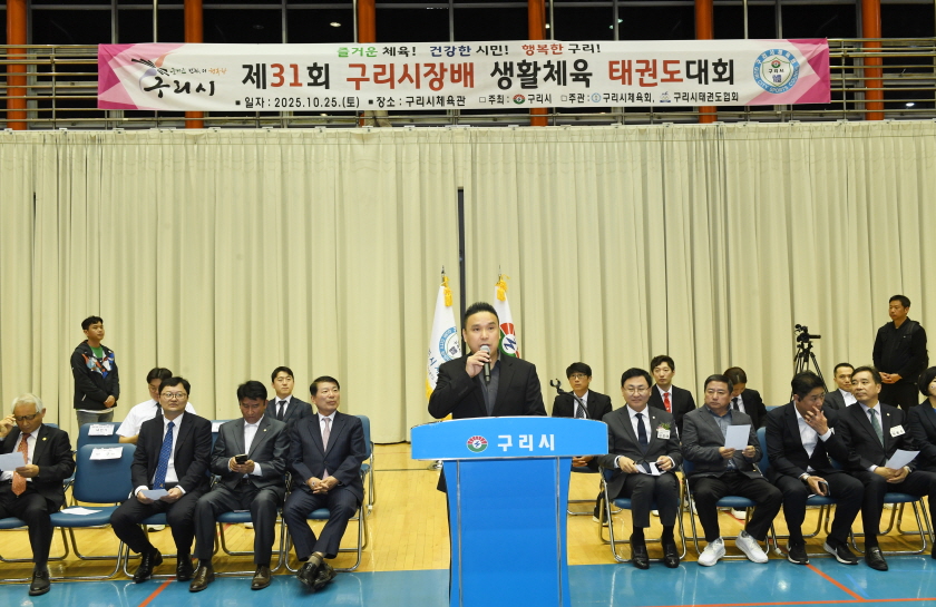 제31회 시장기 생활체육 태권도 대회 구리시태권도협회는 10월 25일 구리시체육관에서 '제31회 시장기 생활체육 태권도 대회'를 개최했다. 이날 행사에는 백경현 구리시장이 참석하여 유공자에게 표창장을 수여하고 축사를 했다. (구리시체육관 2025. 10. 25.) |