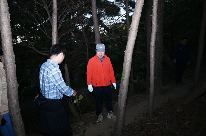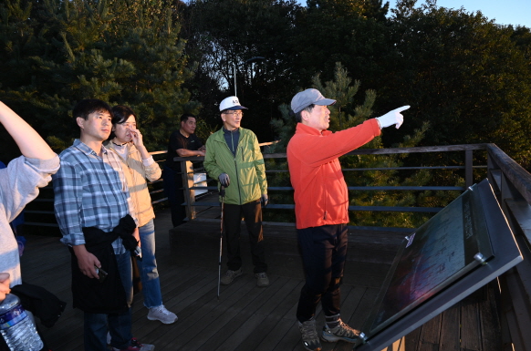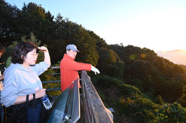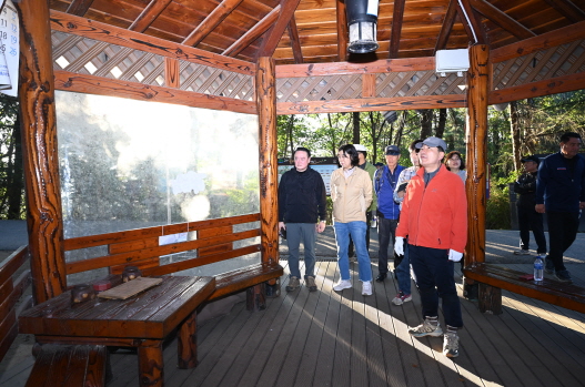 구리시, 아차산 둘레길ㆍ등산로 현장 점검 구리시는 10월 4일 구리 시민들이 아차산 둘레길, 등산로를 안전하게 이용할 수 있도록 현장 점검을 했다. 백경현 구리시장은 “시민들이 안전하게 이용할 수 있도록 시설물 점검과 관리에 철저를 기하기를 바란다.”고 관계자들에게 당부했다. (아차산 둘레길 2024. 10. 4.) |