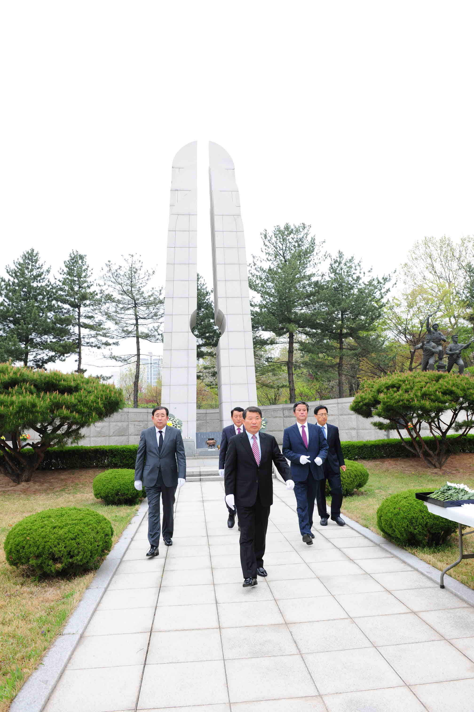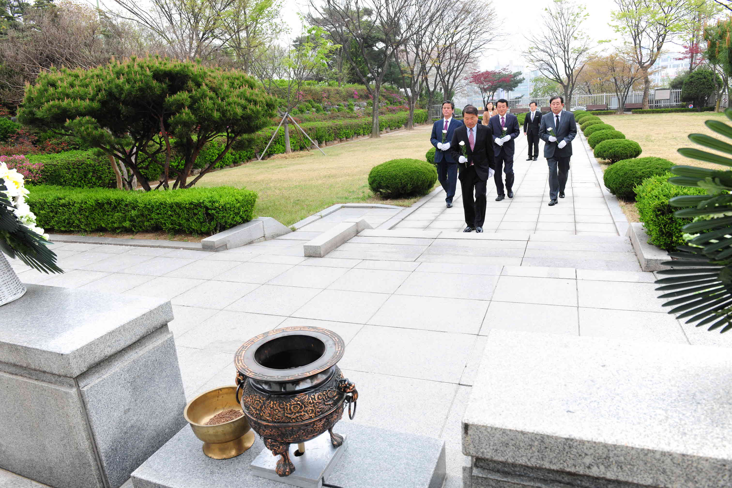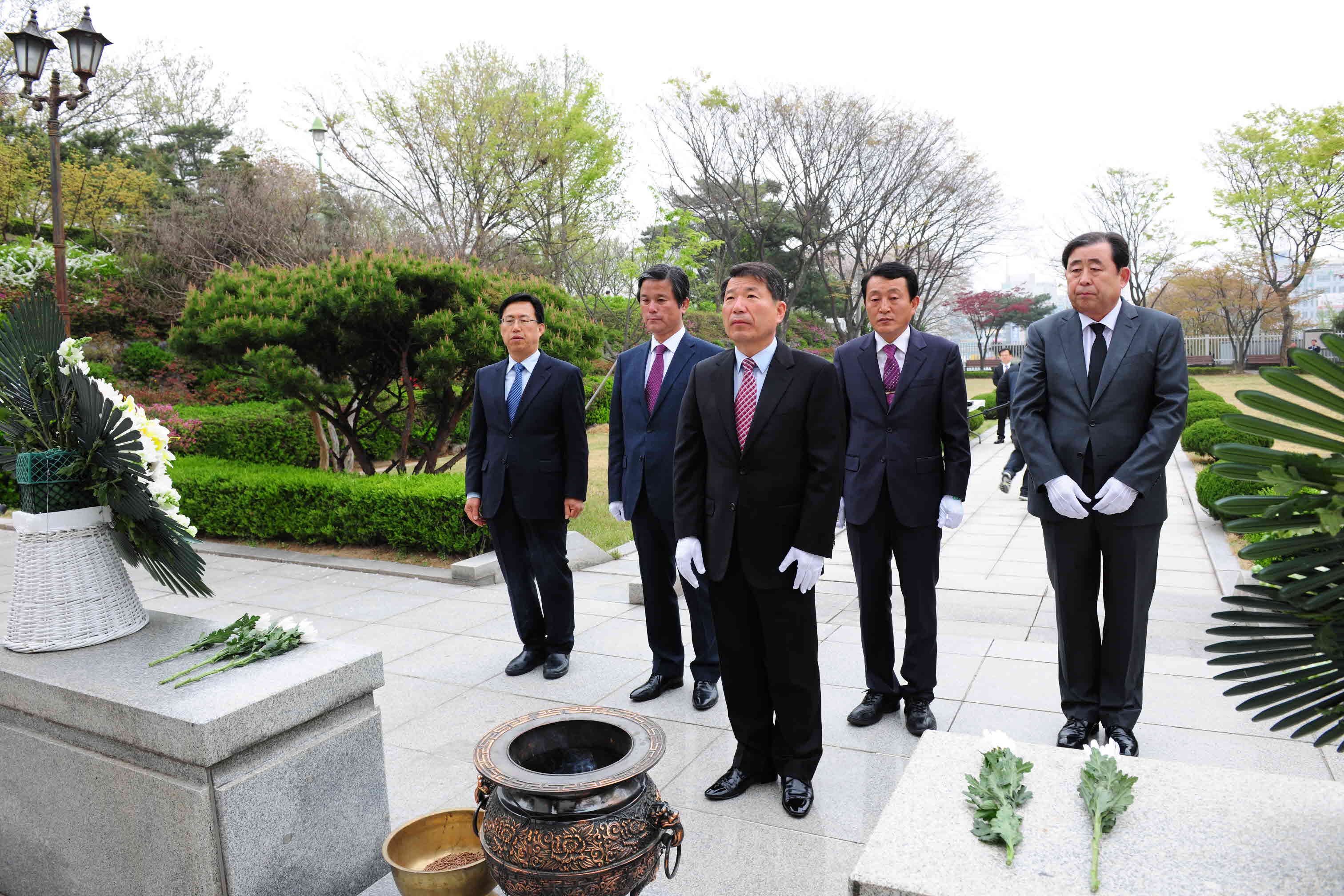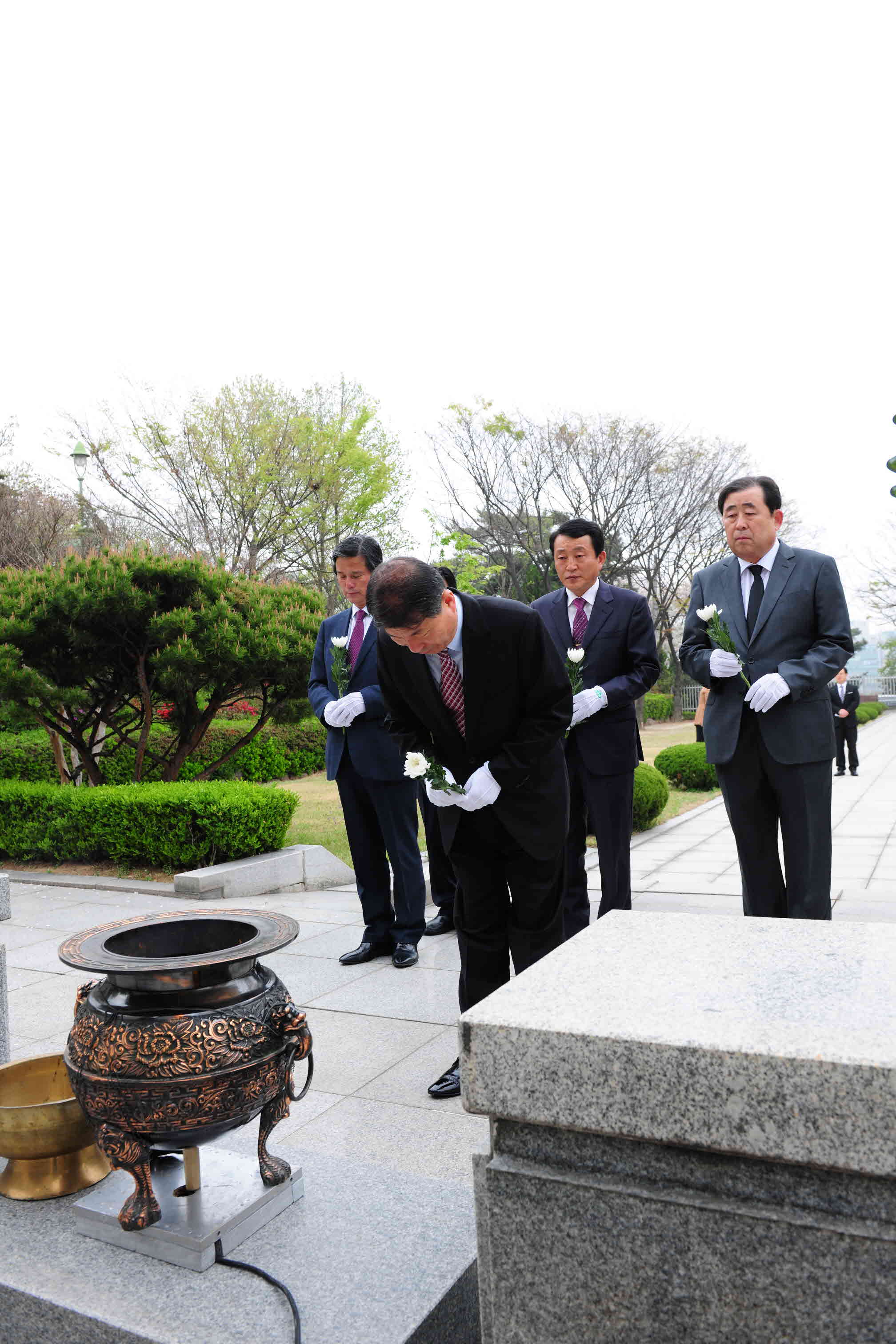 제15대 구리시장에 취임한 백경현 시장은 목숨으로 나라를 지키신 호국영령들에 대한 참배로 시정 첫 업무를 시작하였다. (2016. 4. 14.) |