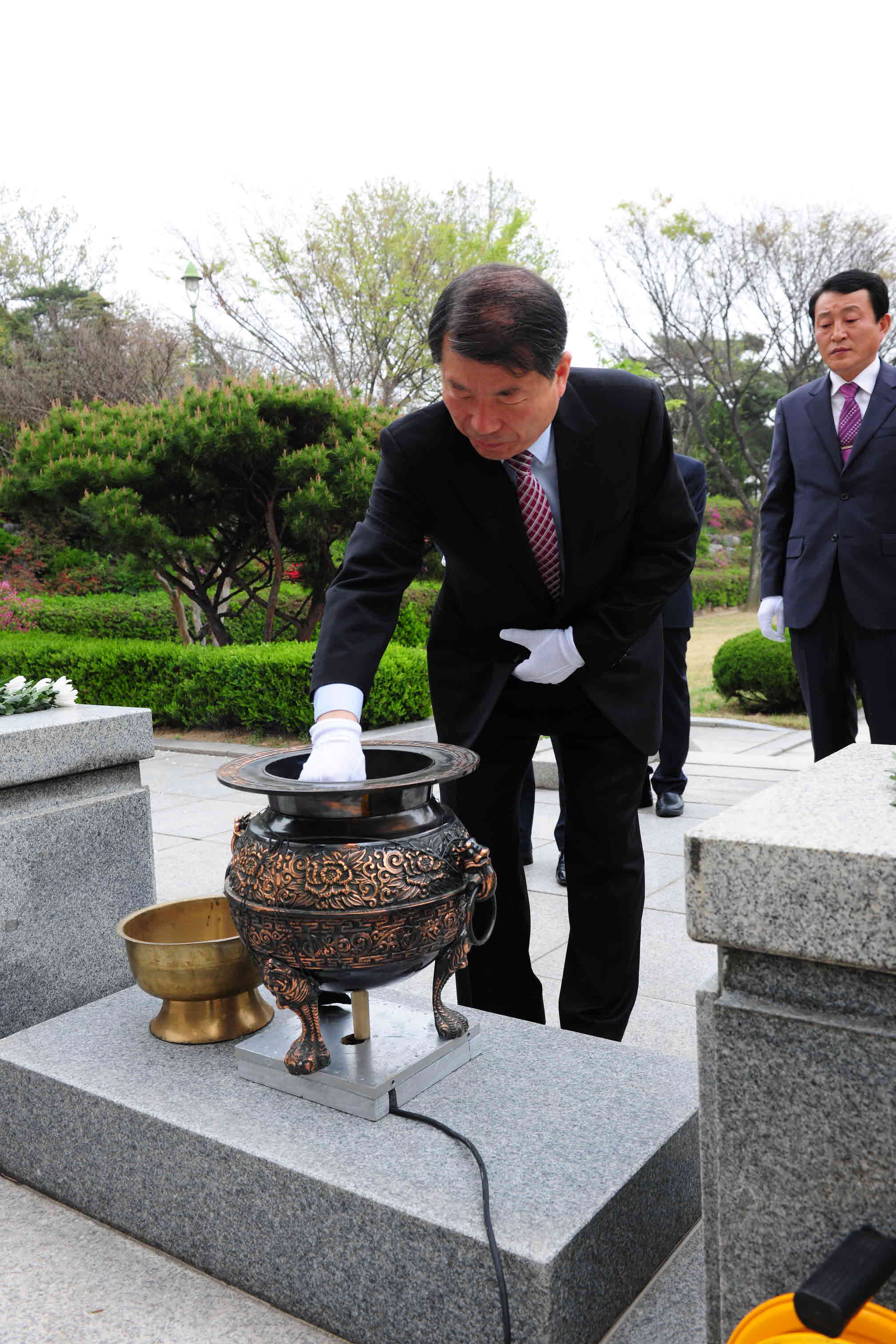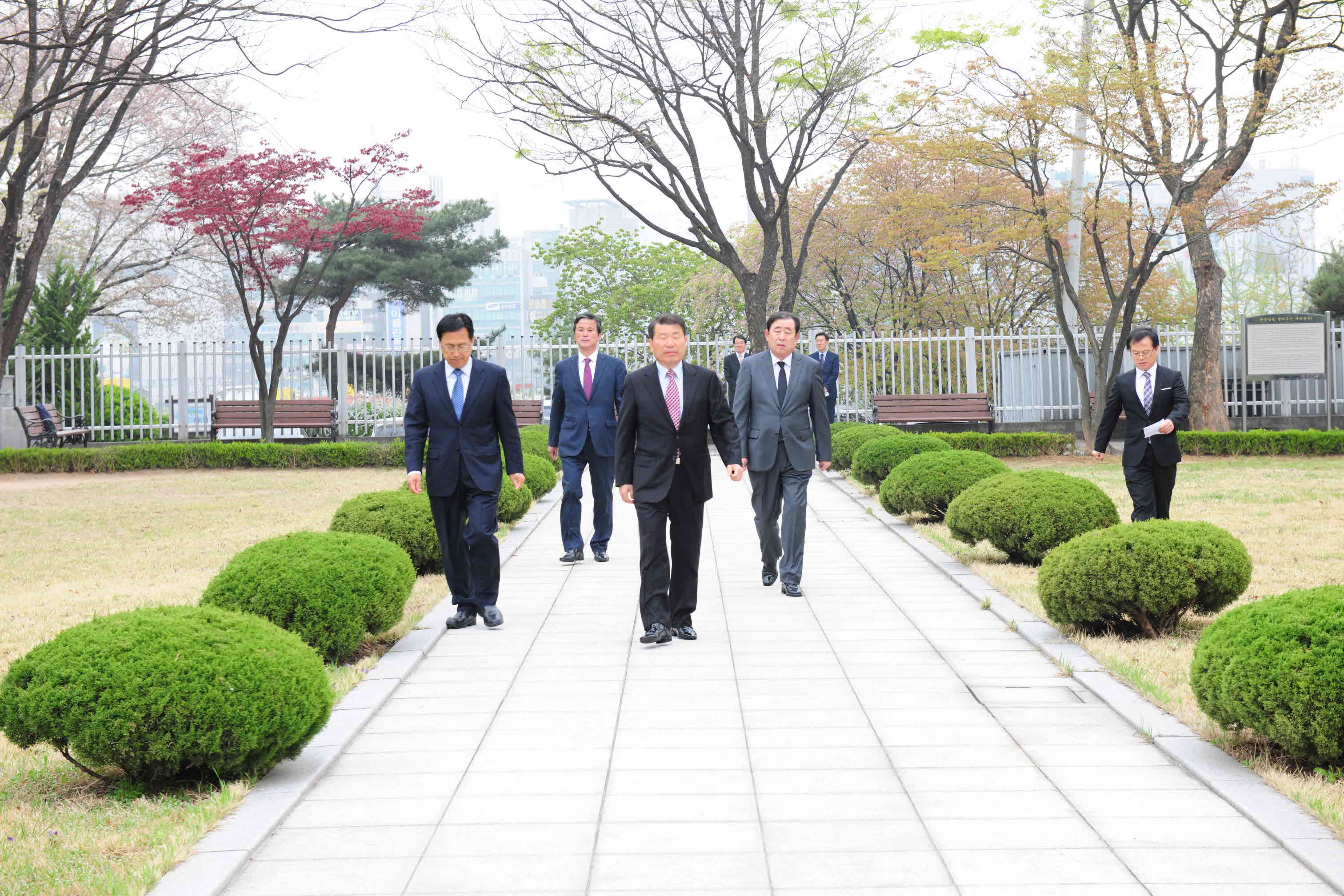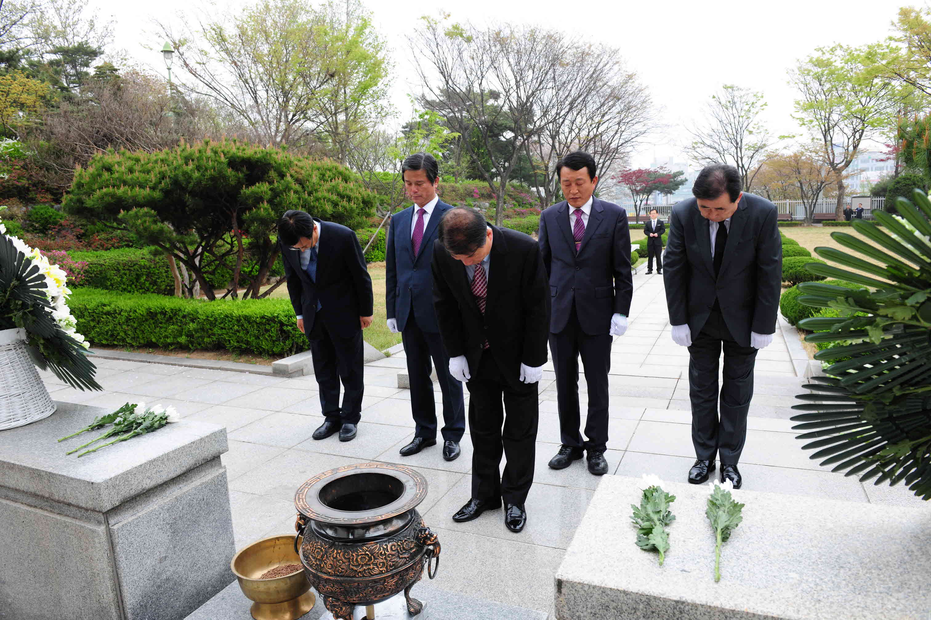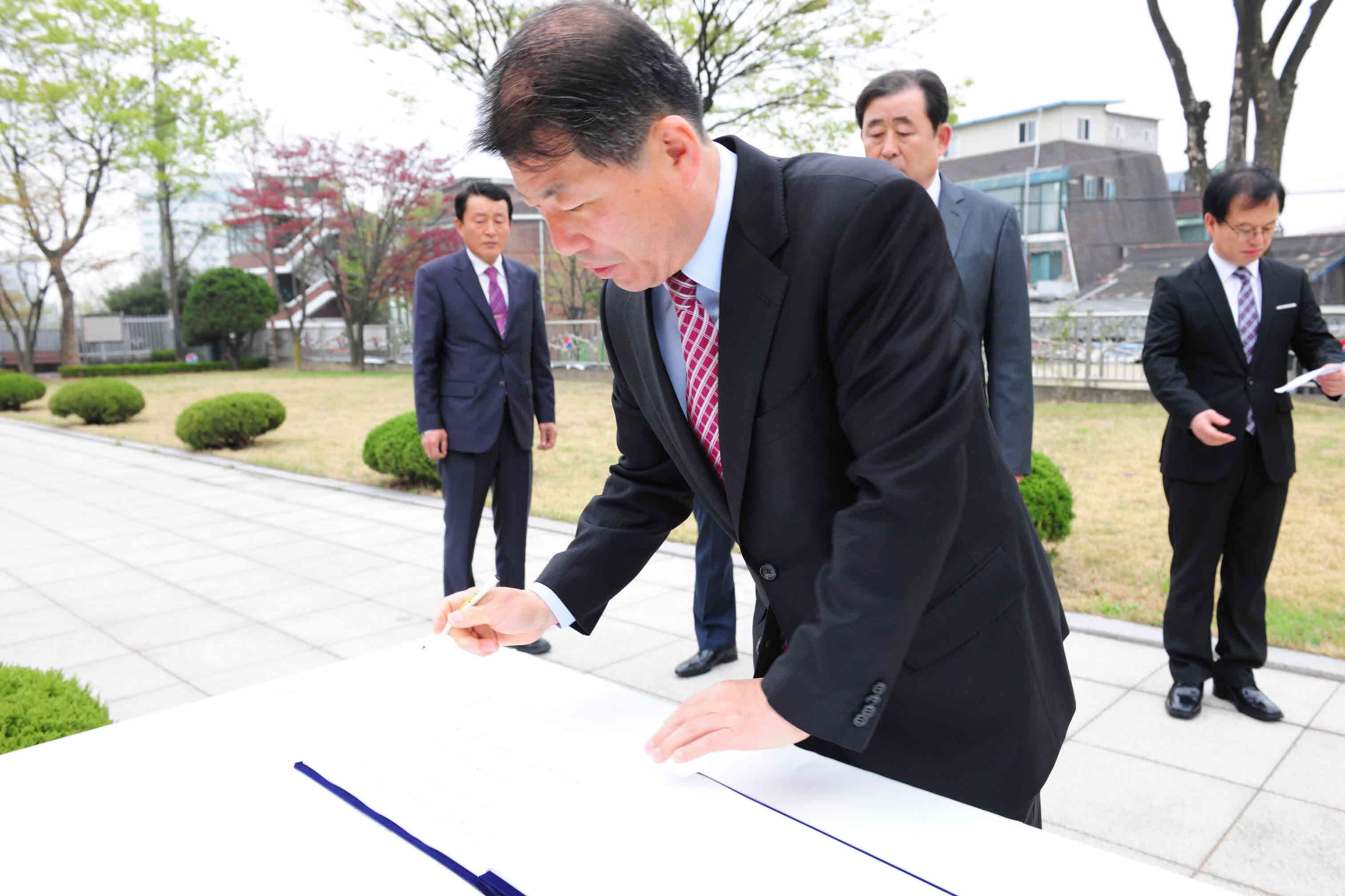 제15대 구리시장에 취임한 백경현 시장은 목숨으로 나라를 지키신 호국영령들에 대한 참배로 시정 첫 업무를 시작하였다. (2016. 4. 14.) |