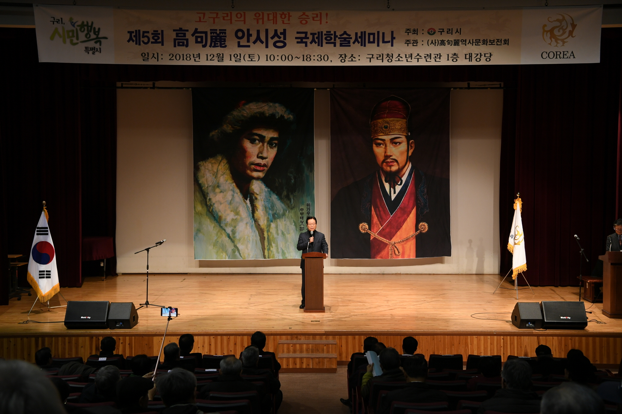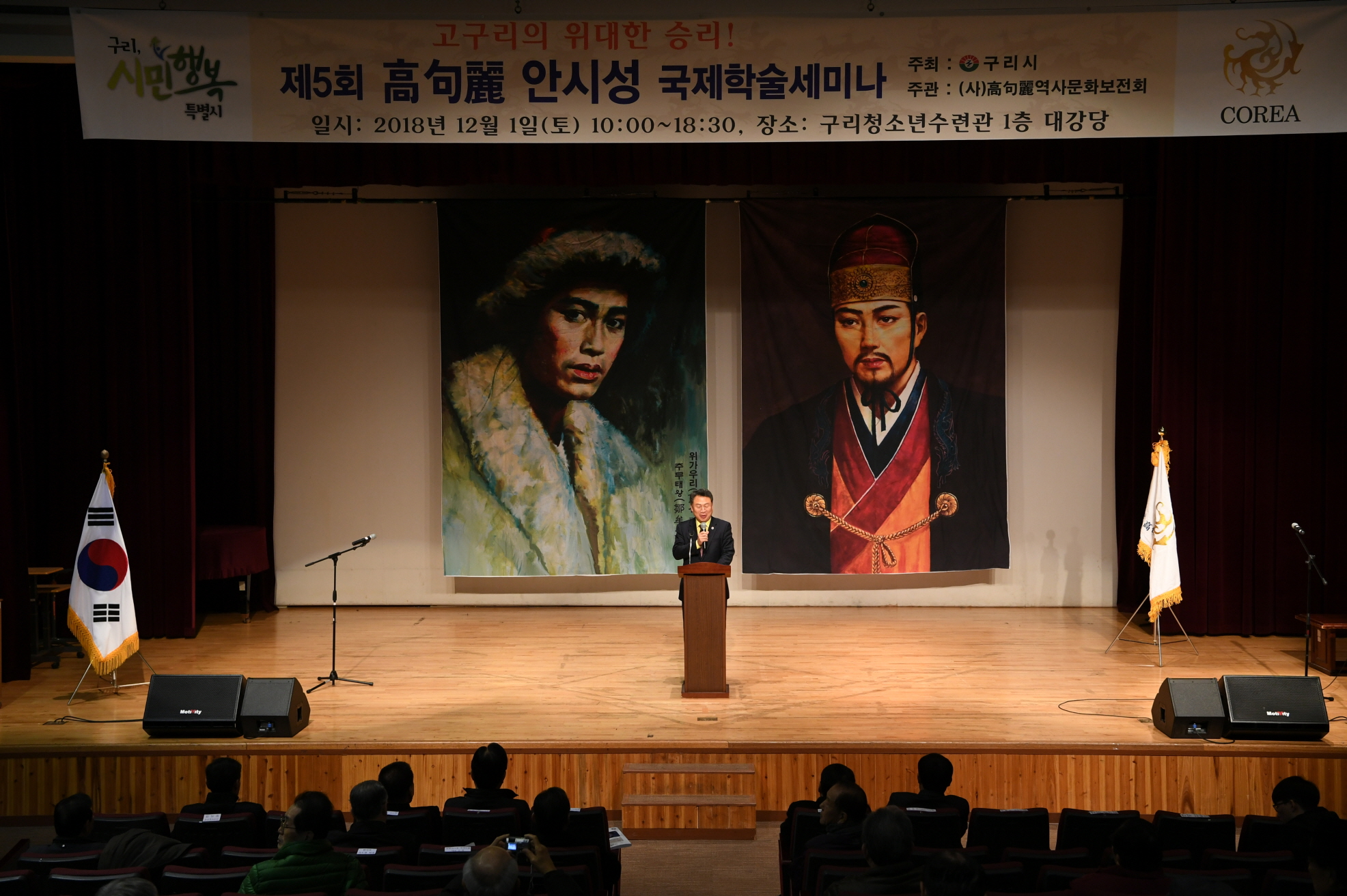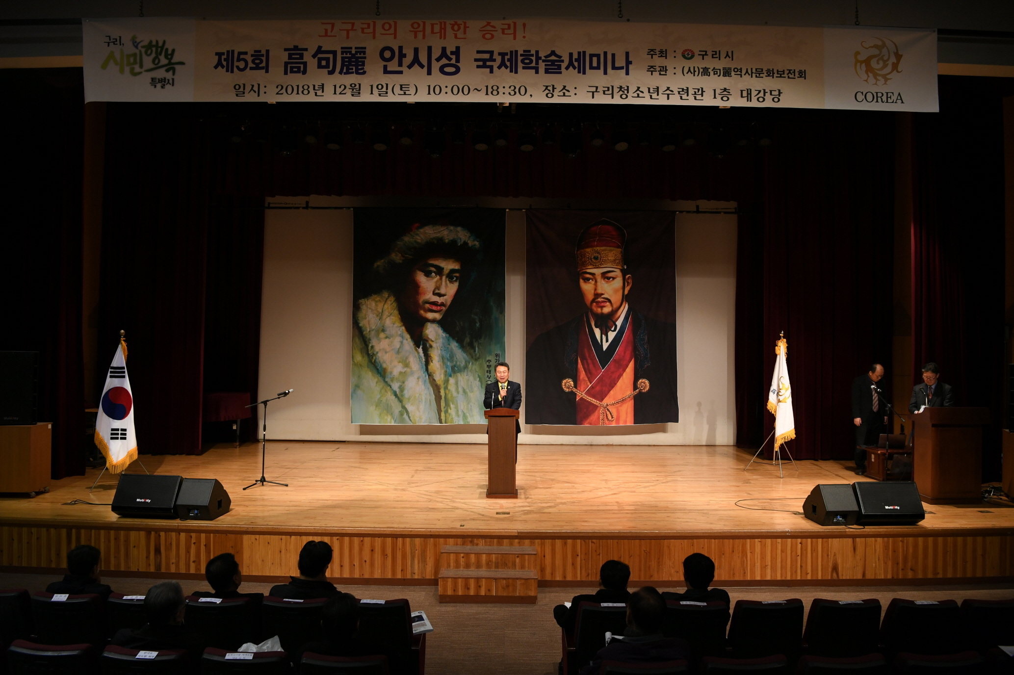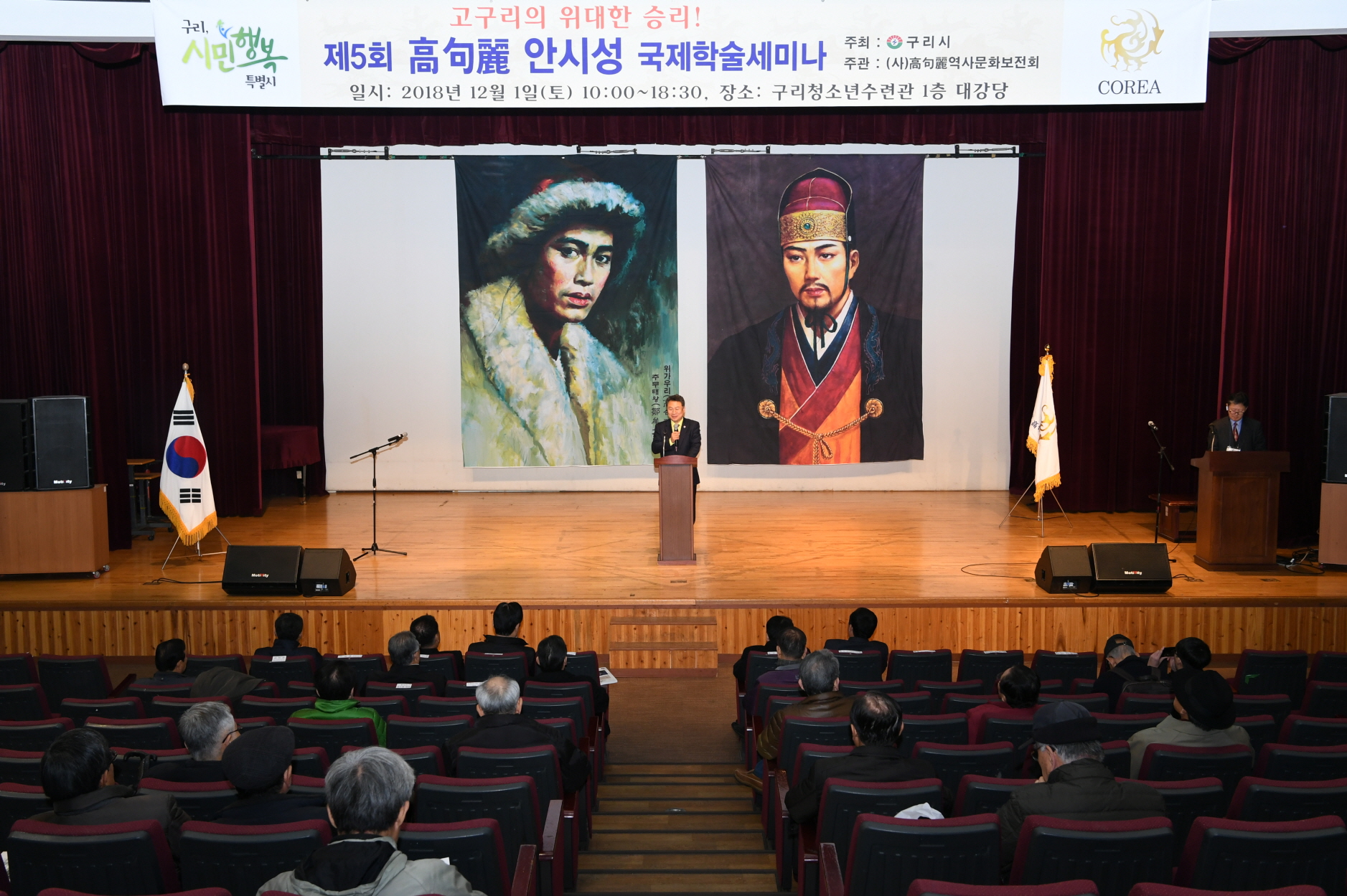 제5회 고구려 안시성 국제학술세미나 구리시가 주최하고 (사)고구려역사문화보전회 주관으로 구리시청소년수련관에서 열린 이번 국제학술세미나는 당태종의 50만 대군에 맞서서 위대한 승리를 이루어낸 고구려 양만춘 장군의 88일간의 위대한 안시성전투에 대한 역사를 재조명 했다. (청소년수련관 2018. 12. 1.) |