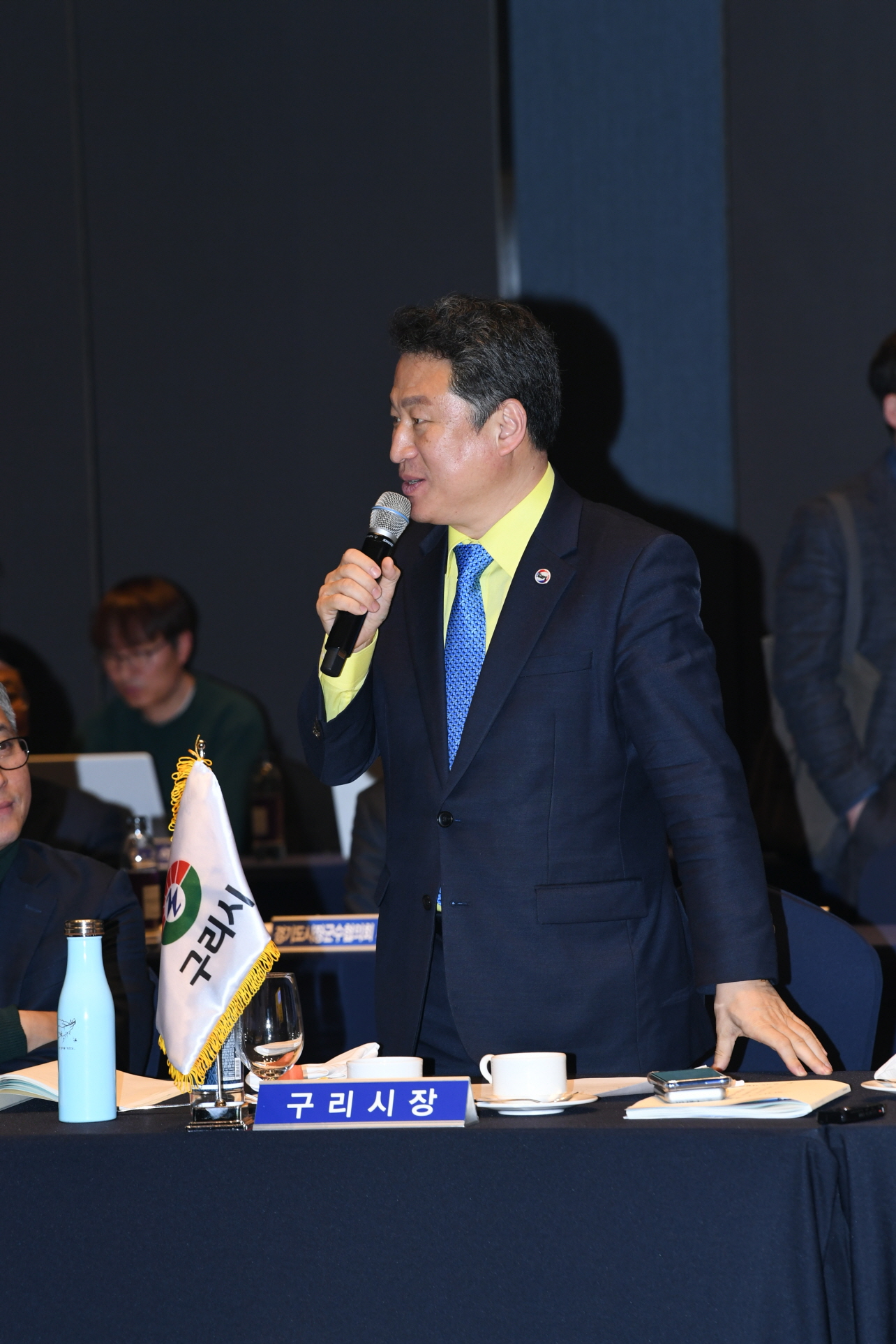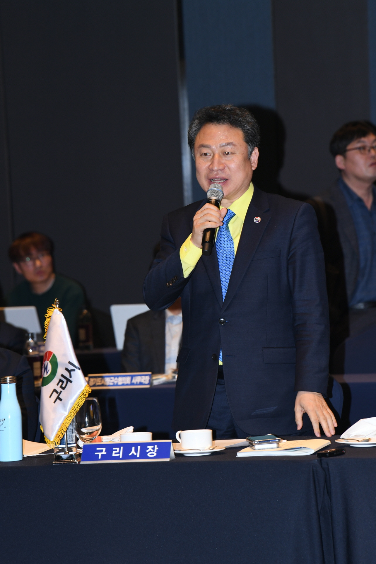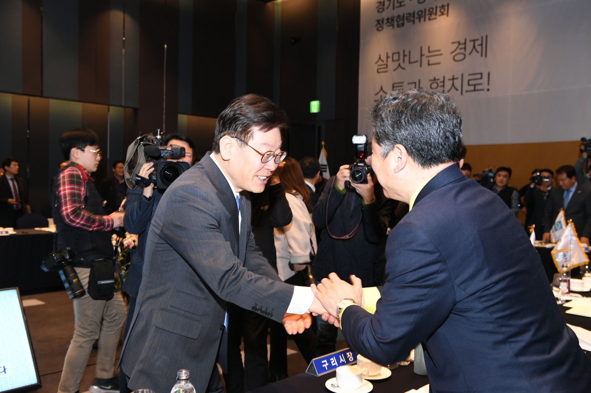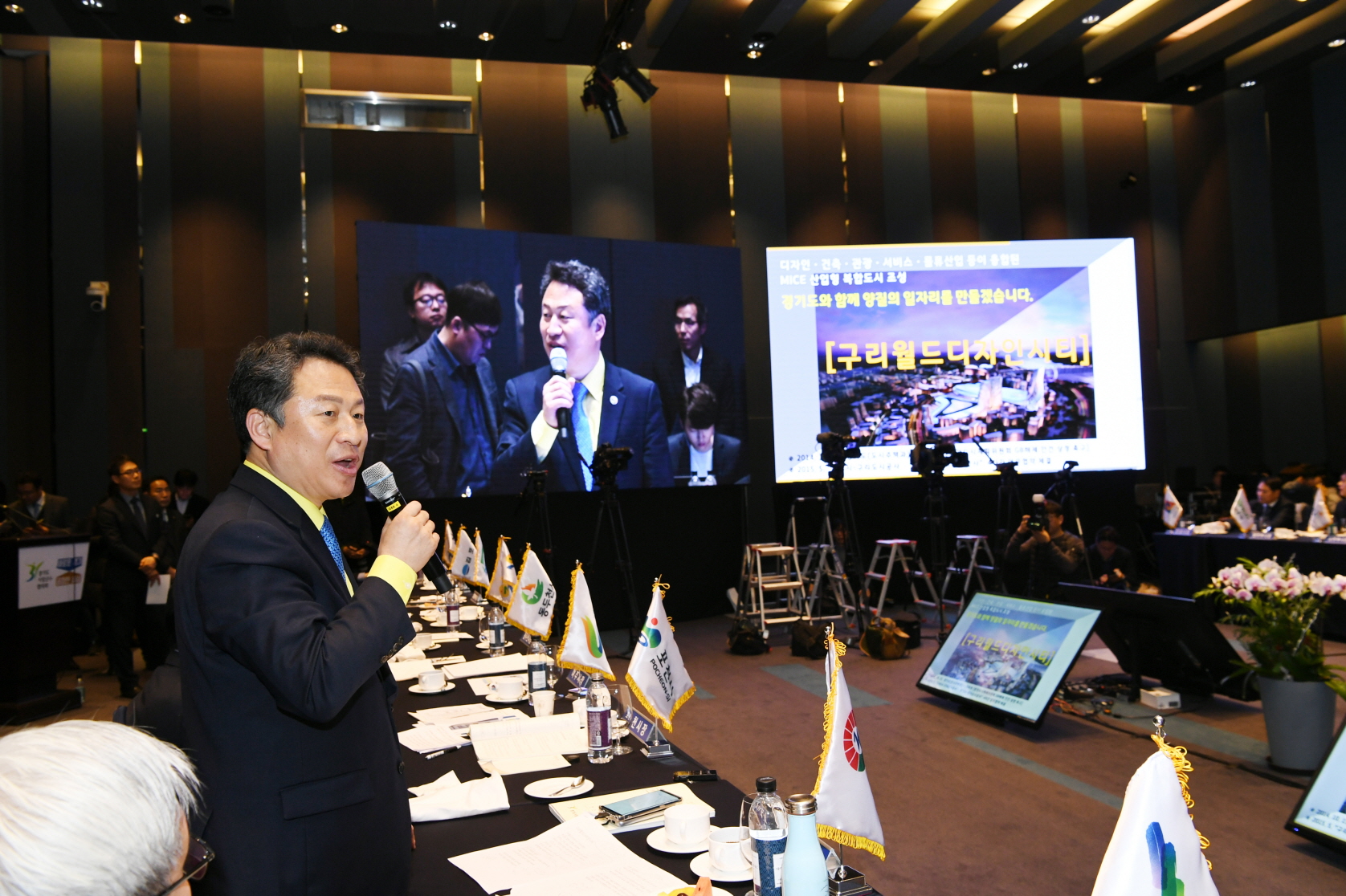 경기도-시장군수협의회 정책협력위원회 안승남 경기도 구리시장은 민선 7기 경기도 시장・군수협의회 제3차 정기회의에서 “GWDC 성공을 위한 그린벨트 해제, 4차 산업 혁신기술과 접목하는 농수산물도매시장 이전을 위한 그린벨트 해제를 건의하며 경기도의 적극적인 협조의 당부한다.”고 했다. (수원 라마다호텔 2019. 1. 22.) |