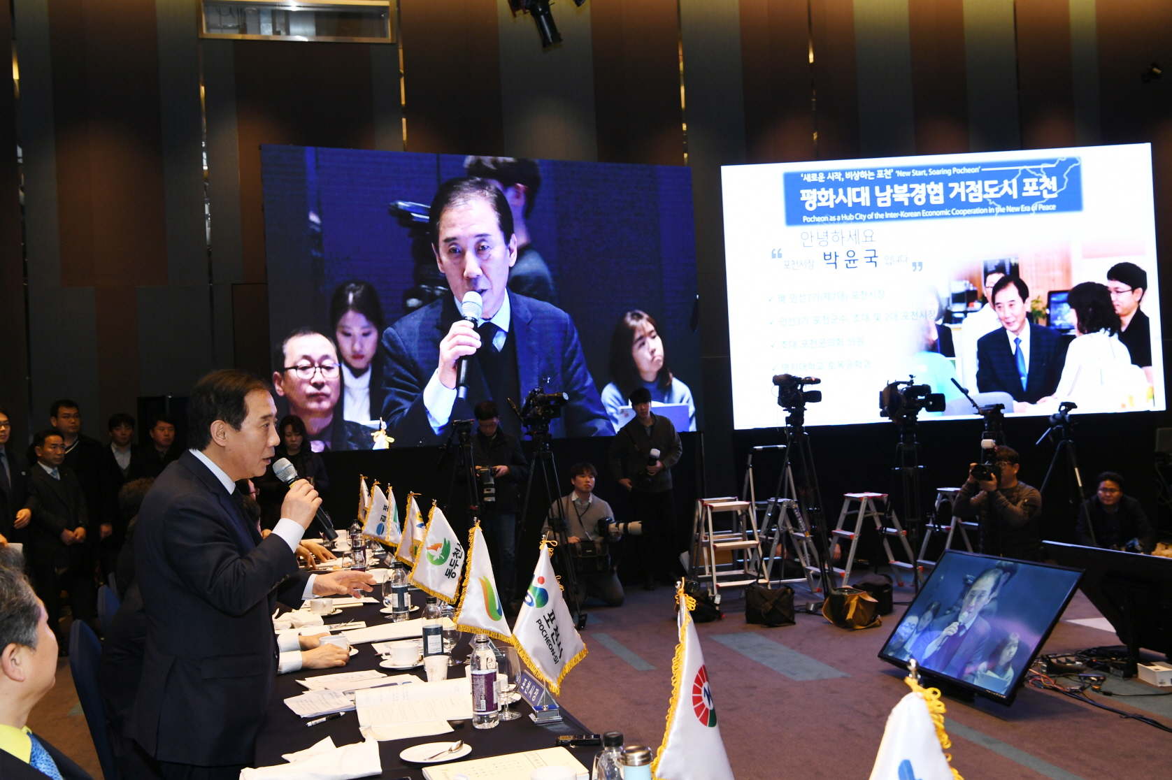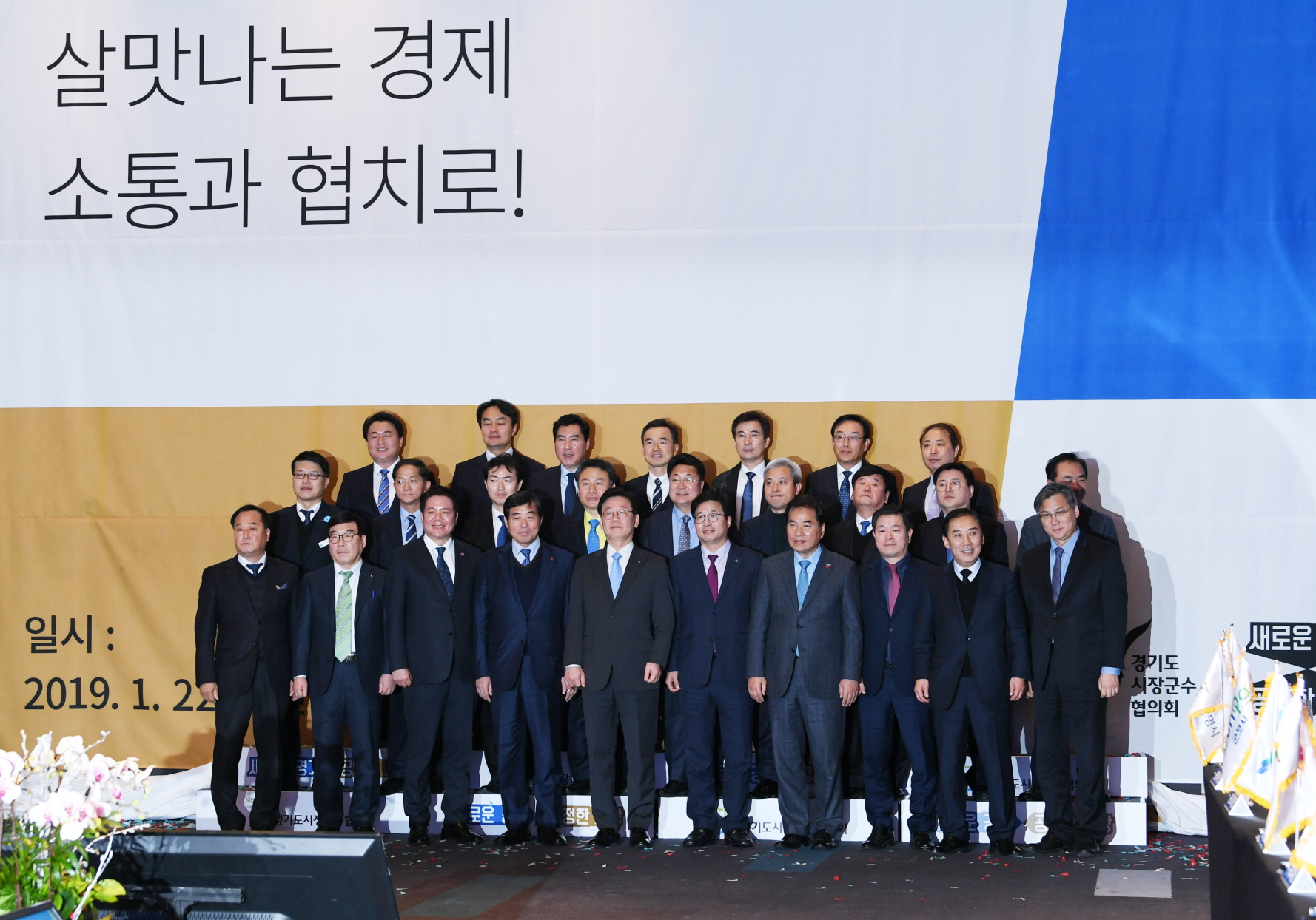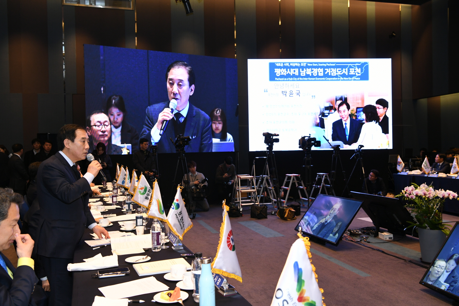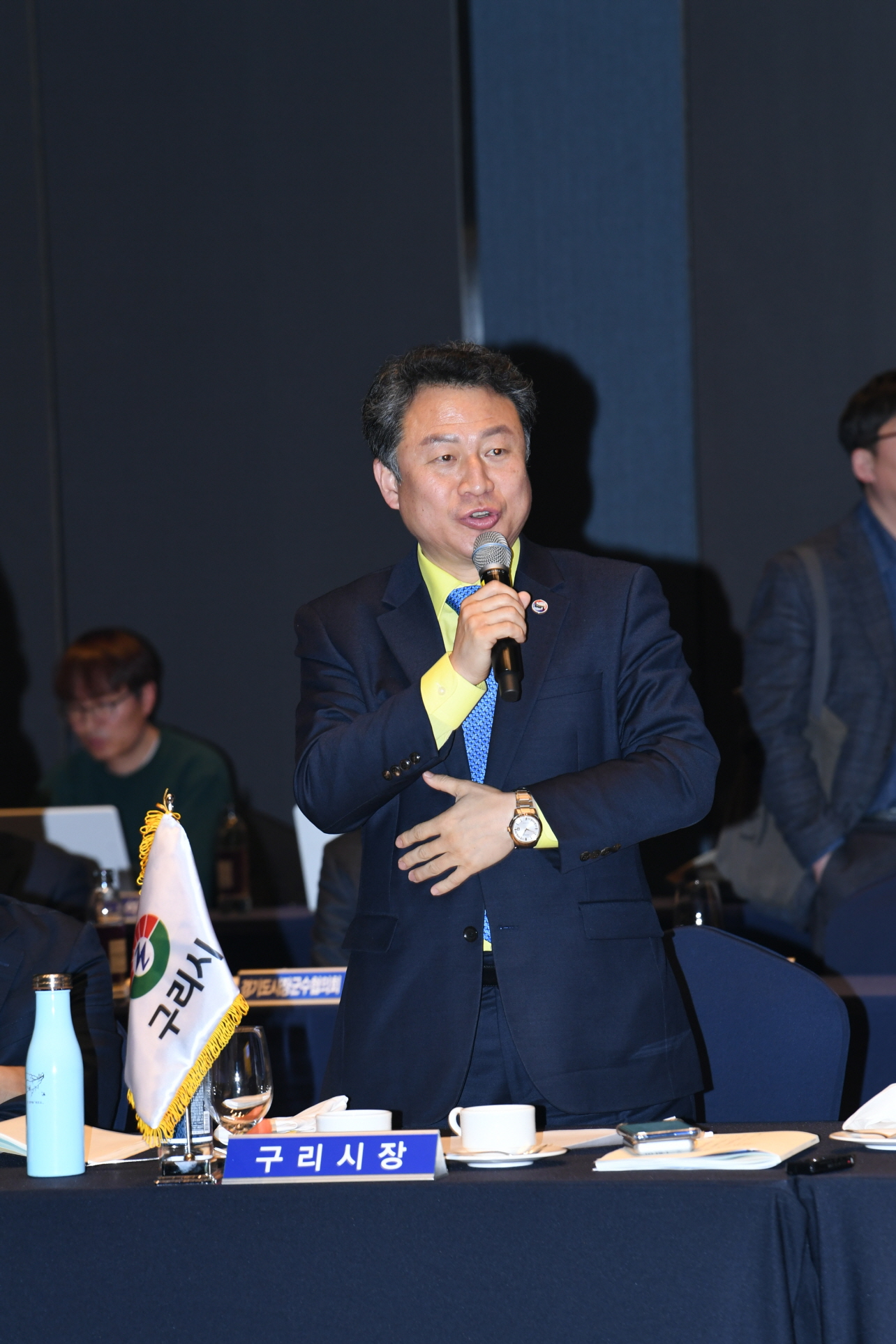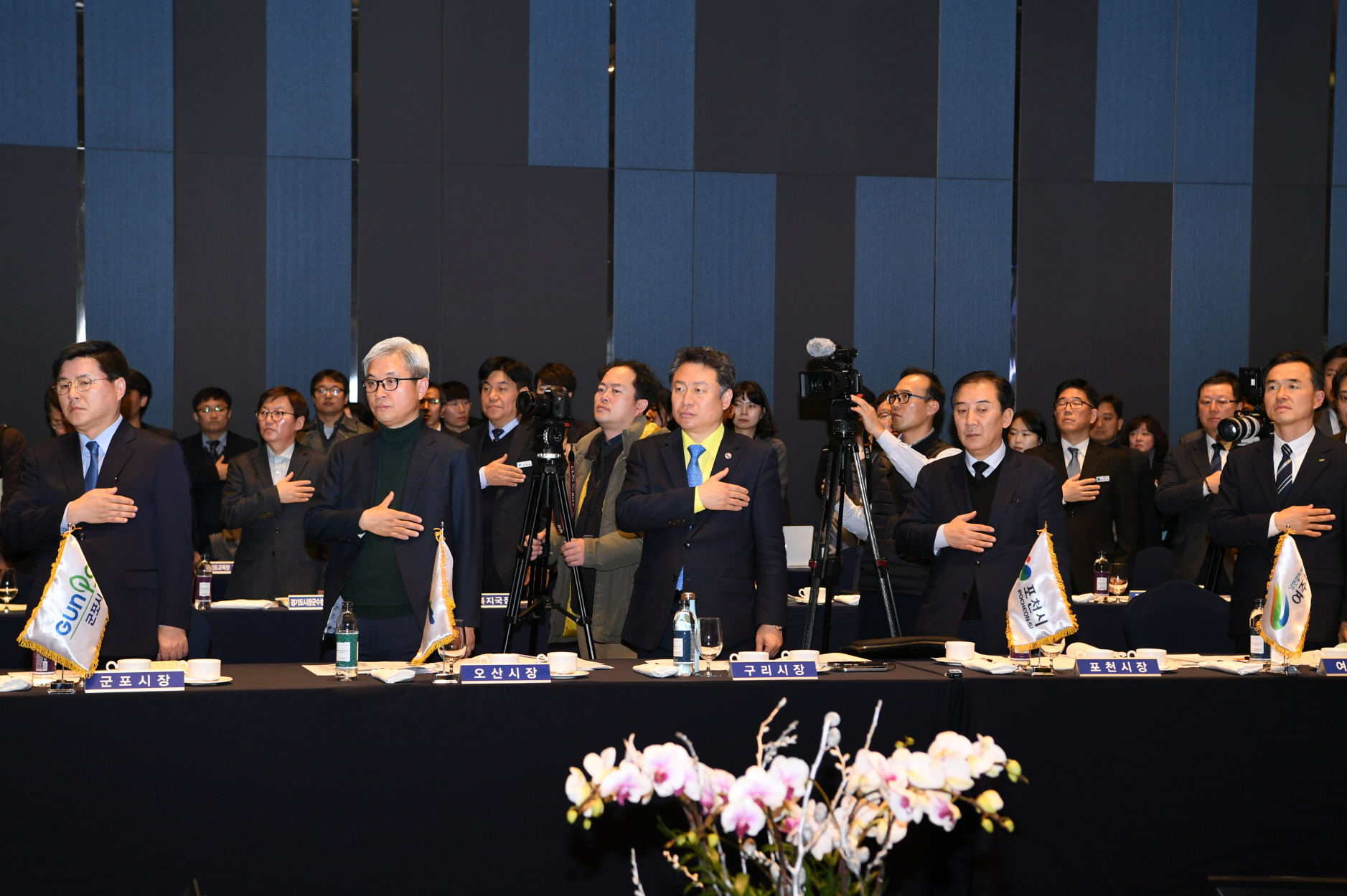 경기도-시장군수협의회 정책협력위원회 안승남 경기도 구리시장은 민선 7기 경기도 시장・군수협의회 제3차 정기회의에서 “GWDC 성공을 위한 그린벨트 해제, 4차 산업 혁신기술과 접목하는 농수산물도매시장 이전을 위한 그린벨트 해제를 건의하며 경기도의 적극적인 협조의 당부한다.”고 했다. (수원 라마다호텔 2019. 1. 22.) |