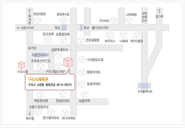 당초 설명회 장소를 시청 1층 대강당으로 정하였으나, 장소 협소에 따른 주민 안전 사고 예방 등을 위하여 구리시 체육관으로 장소를 변경합니다. 이점 양해하여 주시기 바랍니다. 아울러 체육관 내 주차장이 협소하므로, 가급적 차량을 이용한 참석은 자제하여 주시면 감사하겠습니다. 붙임 : 구리시 체육관 위치도 |