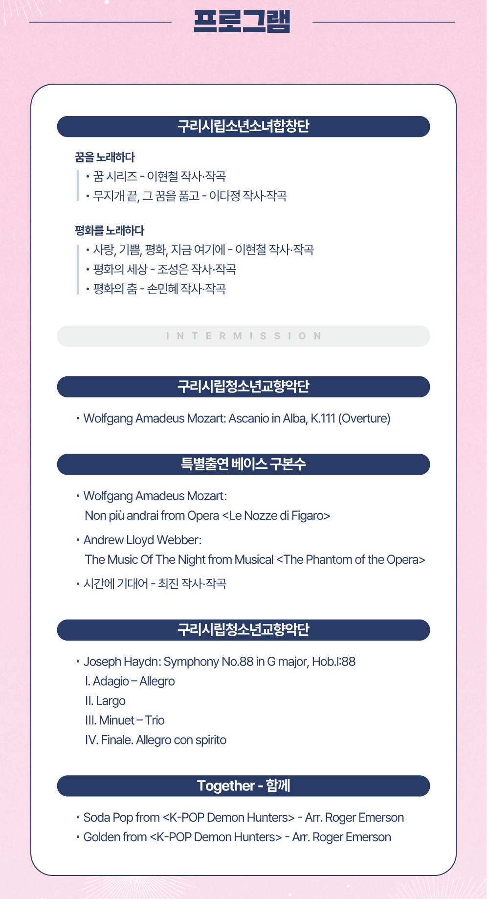 | 제23회 구리시립소년소녀합창단, 청소년교향악단 합동 정기연주회 | |