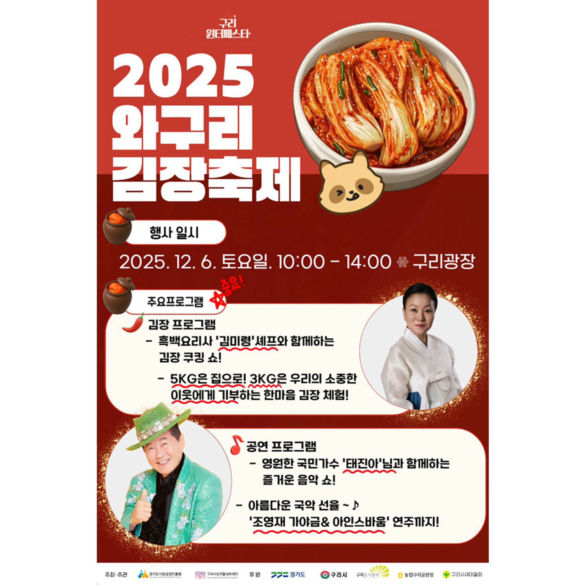 카드뉴스 홈 구리소식 카드뉴스 공유하기 네이버 페이스북 링크 프린트하기 구리소식 > 카드뉴스 qr코드 열기 모바일로 QR코드를 스캔하면 이 페이지로 바로 접속 할 수있습니다. 2025 와구리 김장축제 문의전화 작성일 2025.12.05 조회수 14 1번 이미지 보기 2025 와구리 김장축제 2025 와구리 김장축제.jpg 다운로드 목록 이전글 2025 크리스마스트리 점등식 다음글 2025 마신는구리 축제 - 구리전통시장