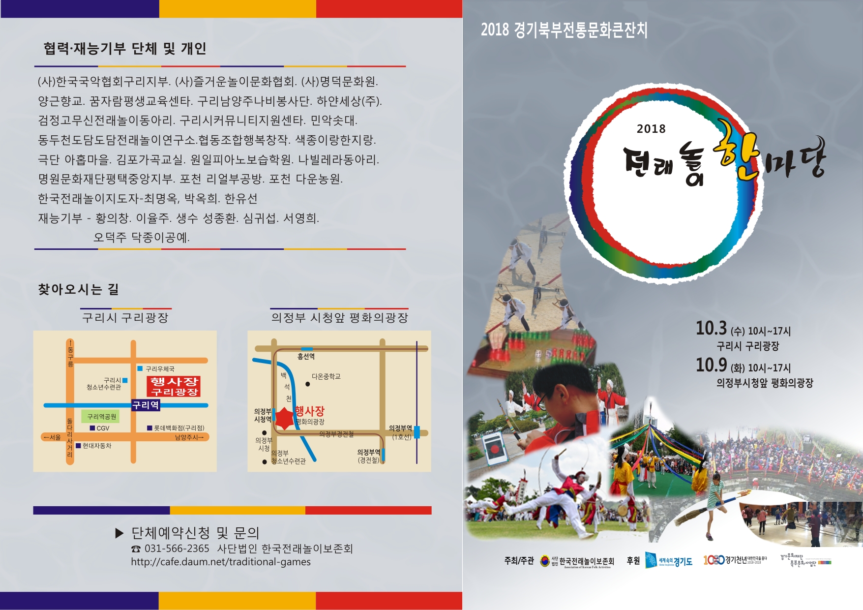 | 2018.10.3.(수) 10:00 경기북부 전통문화 큰잔치 "전래놀이 한마당" | |